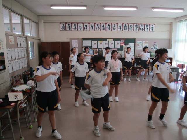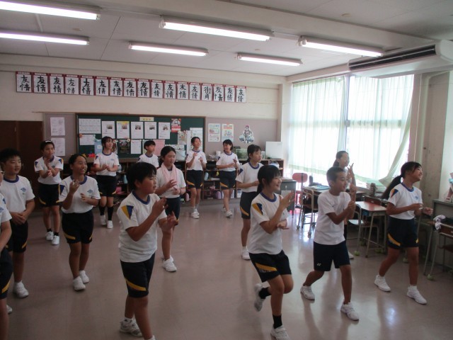 今日の体力つくりのダンスは「はいよろこんで」の曲に合わせて踊りました。