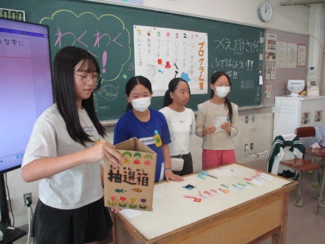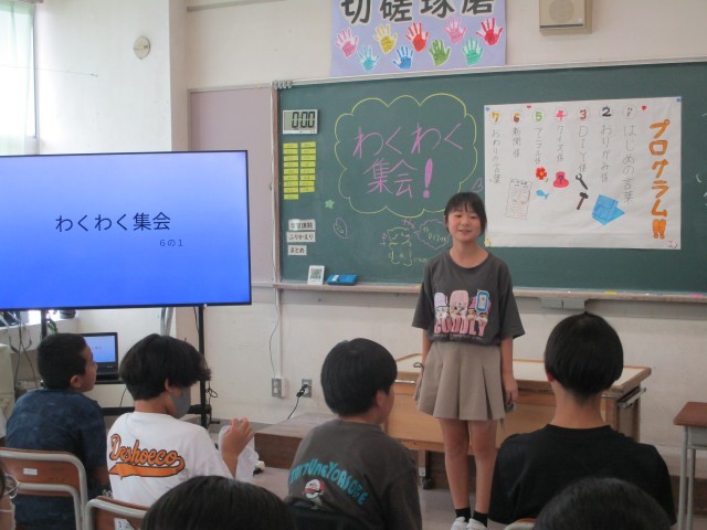 6年生 わくわく集会 公開日 2025/09/19 更新日 2025/09/19 6年生 今日は、学級集会をしました。それぞれの係から出し物があり、みんなで折り紙を折ったり、クイズに挑戦したり、ガチャガチャをしたりしました。大盛り上がりの楽しい時間になりました。 +3