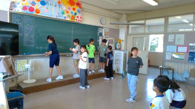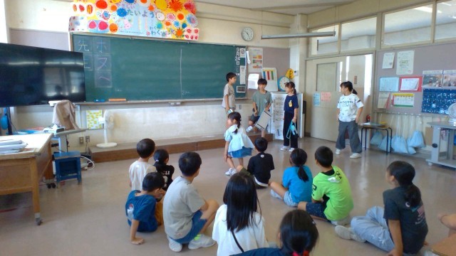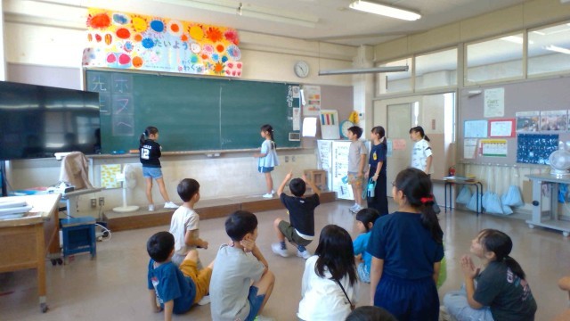 4年生が考えてくれた遊びをしました。赤団1・2班では、絵しりとりを楽しみました。ルールがあまりわかっていない1年生にも、4年生が優しく教えてくれていました。