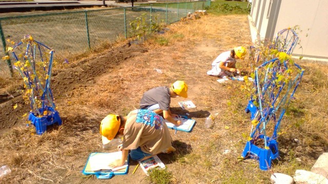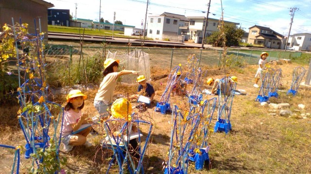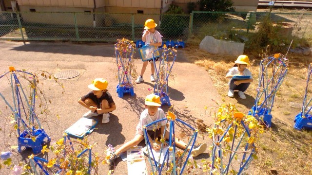 1年生 あさがおの様子をよく観察しました。