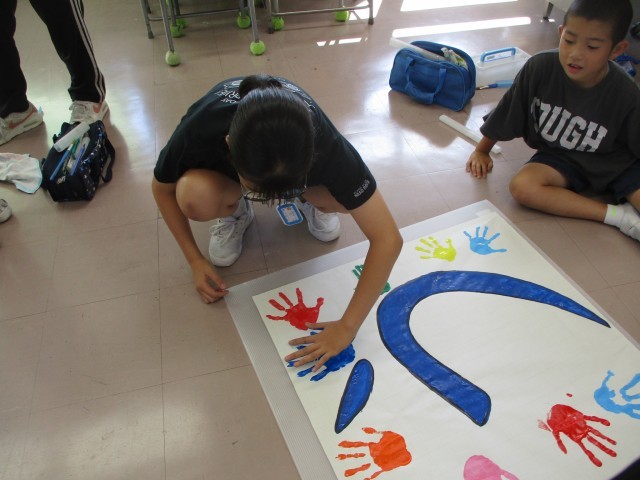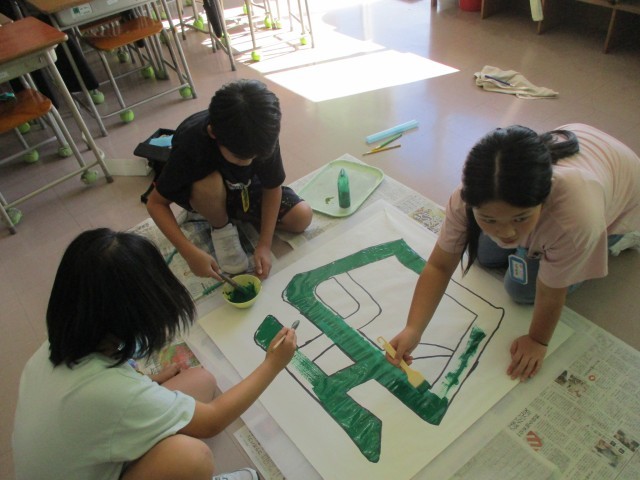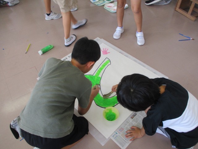今日はファミリーで、学習発表会で使用するパネルを作りました。