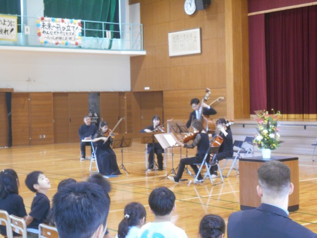 桐朋オーケストラアカデミーの方に来校していただき、音楽鑑賞をしました。
