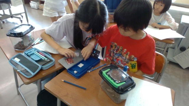 3週間飼っていた生き物を最後に観察して、元いた場所に逃がしました。