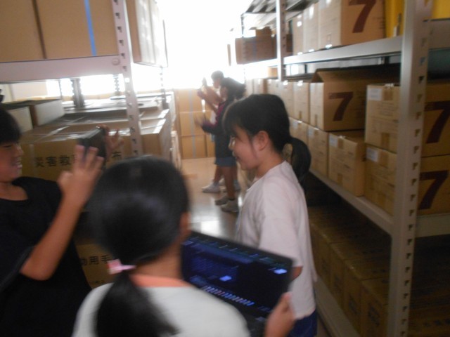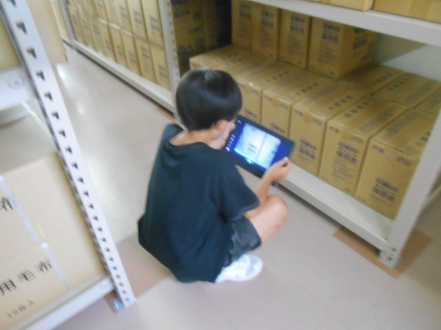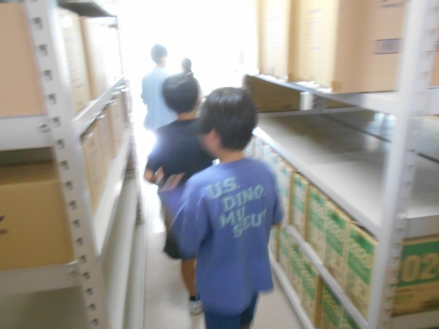 本校には、災害により避難したときに使用する備蓄庫があります。今日は、その部屋にどのようなものが用意してあるのかを見て回っていました。