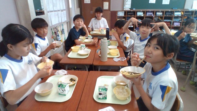 5年生みんな、毎日の給食の時間が楽しみで、モグモグ美味しそうに食べています。