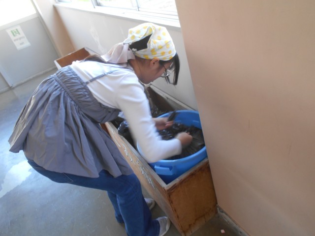 ごみ袋の中身を大きなごみ箱に移しかえることにしているのですが、今日はその場所で「みんなどんなふうにして入れているのだろう」と眺めていました。以前そのごみ箱が溢れ返った状態になっていて、用務員さんがとても大変な思いをしていたことがあったからです。
