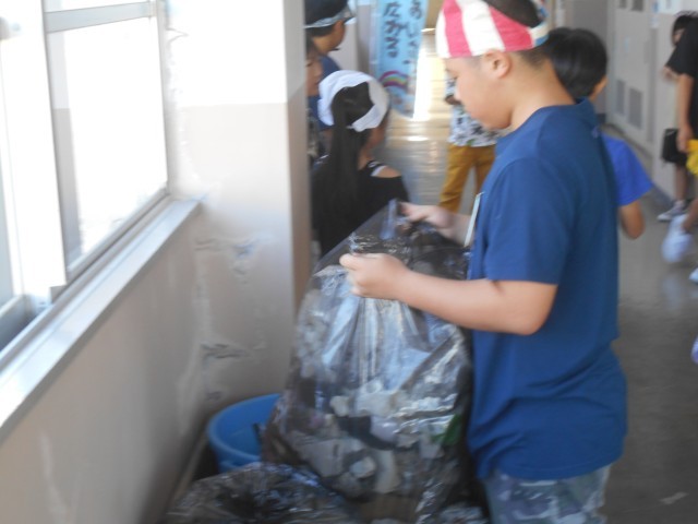水橋西部小学校では、月曜日と木曜日に朝清掃をします。そして木曜日には必ず、担当箇所にあるごみ箱のごみを収集場所へ運ぶことになっています。
