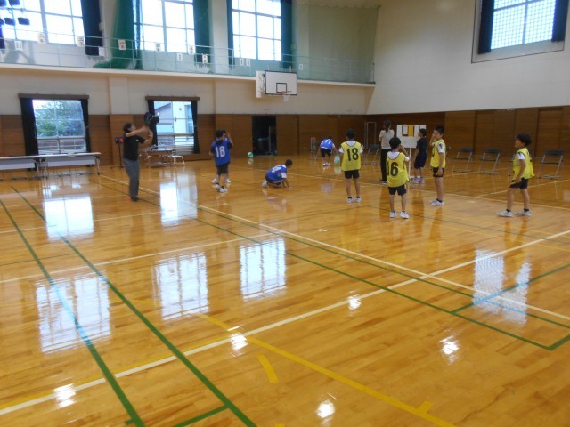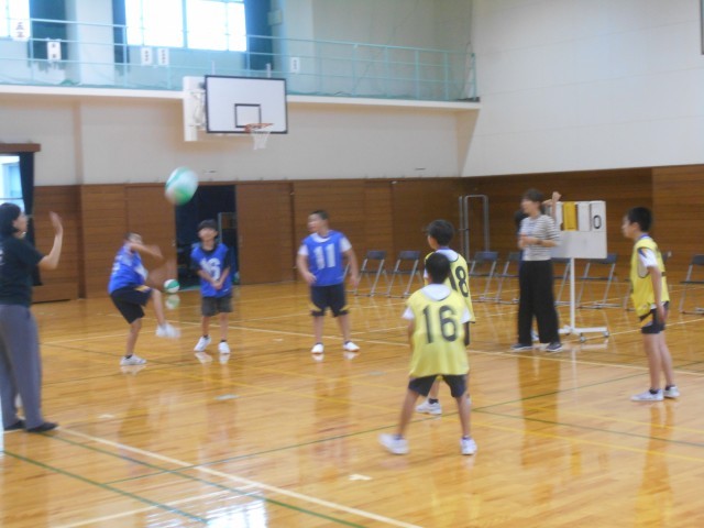 学習発表会仕様の中で、場所を見つけてビーチボールバレーをしていました。