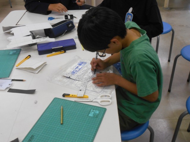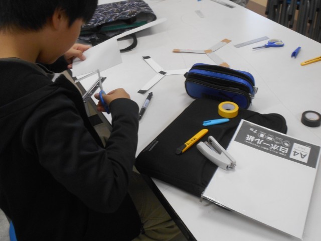 ブーメランを作っていました。