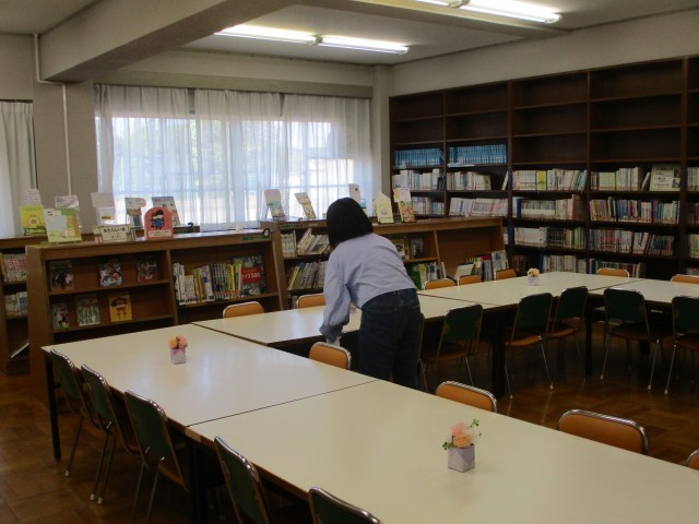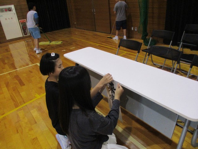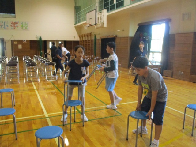明日は学習発表会。5,6年生が協力して前日準備をしました。