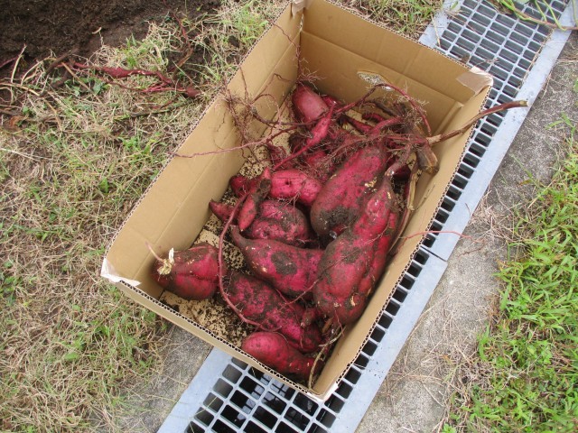 サツマイモの収穫をしました。大きなサツマイモがゴロゴロ出てきて子供たちは大喜びでした。