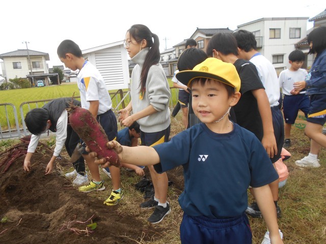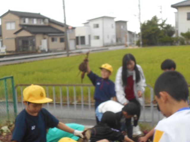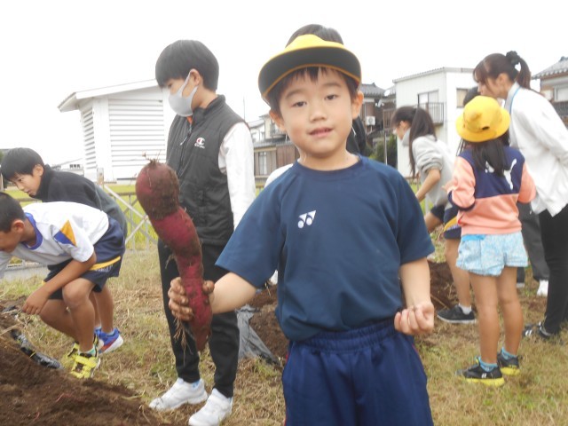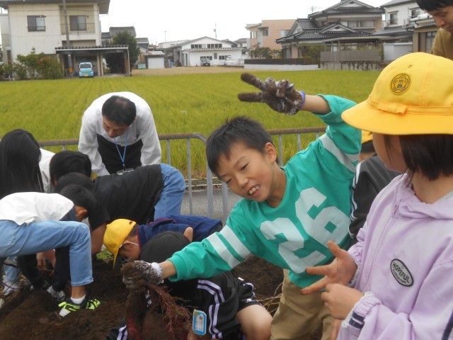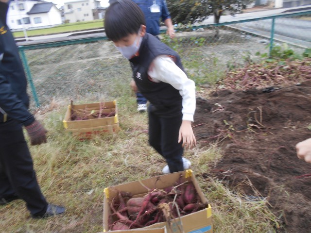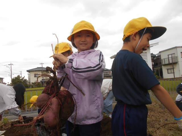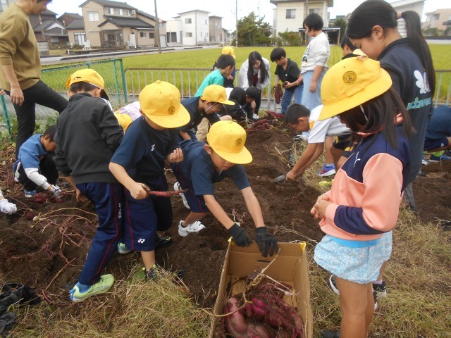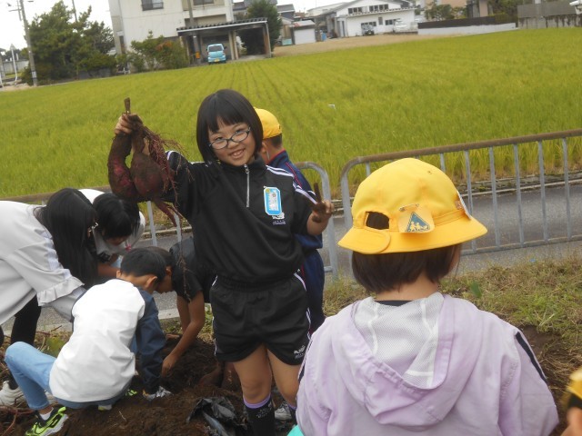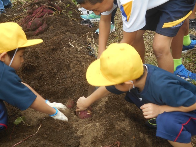 さつまいもが、途中で折れないように丁寧に掘り起こしていました。