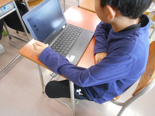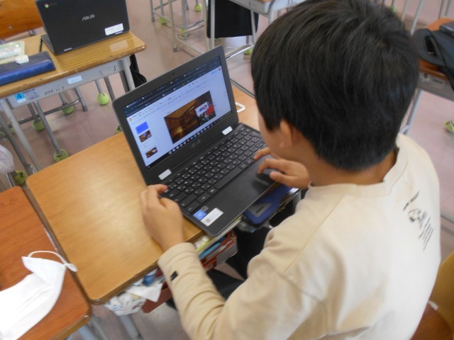 4年生教室へ行くと、好きな生き物についてプレゼンにまとめていました。