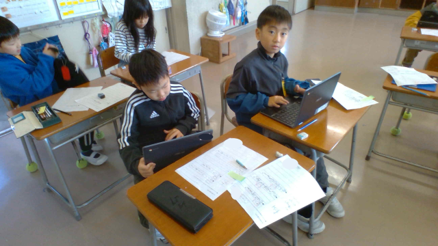 作った問題の丸付けをしたり、新しい問題づくりに取り組んだりしました。