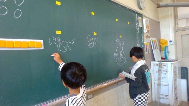 3+9の計算の仕方を考えました。一人一人が今まで学習したことを生かし、自分の計算の仕方をじっくり考えていました。みんなの前で自分の考えを発表できる人も増えていました。