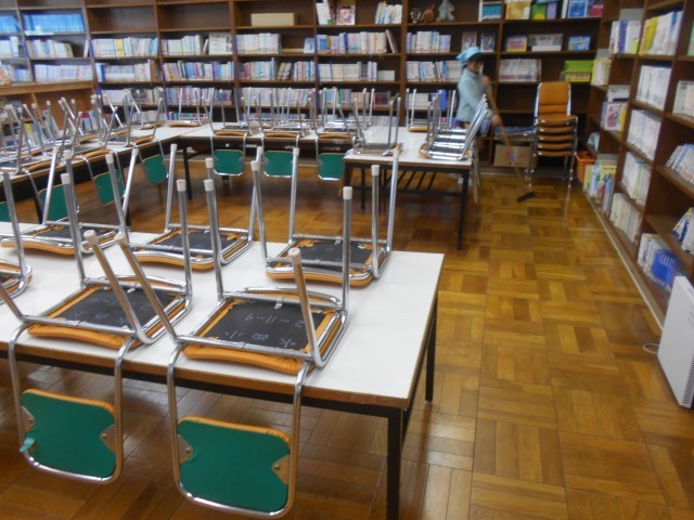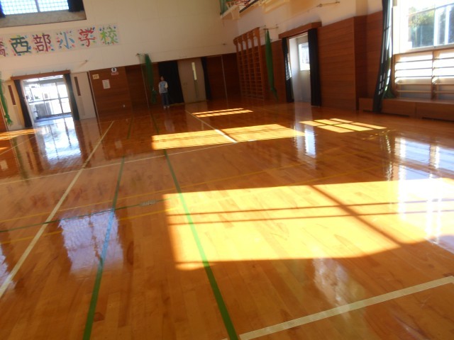 1枚目の写真から、体育館廊下、体育館、図書室、2階廊下、図工室、女子トイレです。