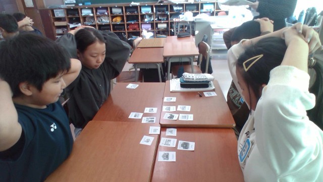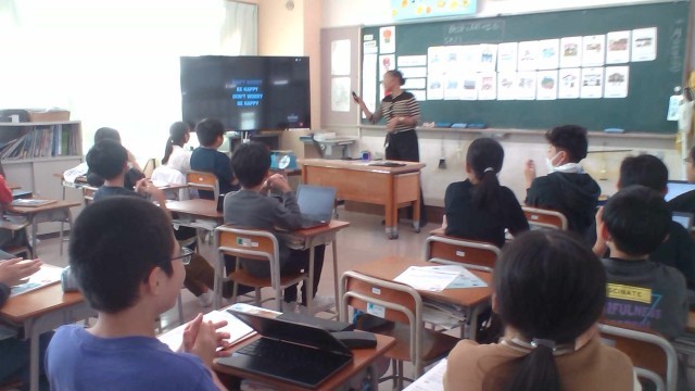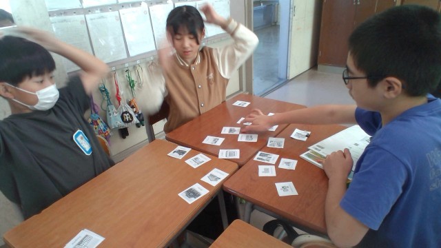 今日の外国語では、新しい先生をお招きし、ALTの先生と3人で授業をしました。今日は施設の名前を英語で言うことを目当てに、カルタゲームに取り組みました。
