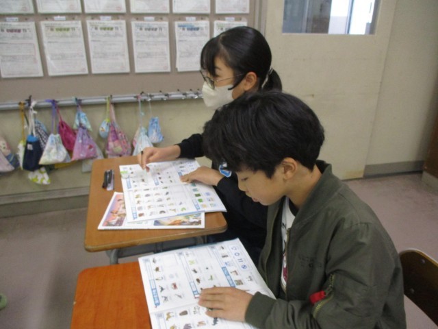 アルファベットのヒントをたよりに、英単語クイズをしました。5つのライフがなくなる前に、正解にたどり着くことができて嬉しそうでした。