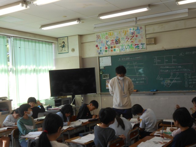 算数の学習で、身の回りにある「平行」を見つけていました。
