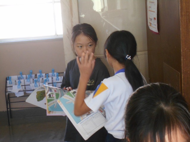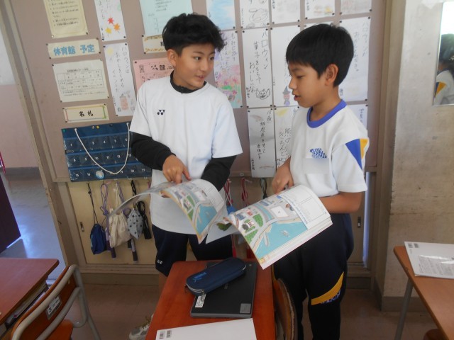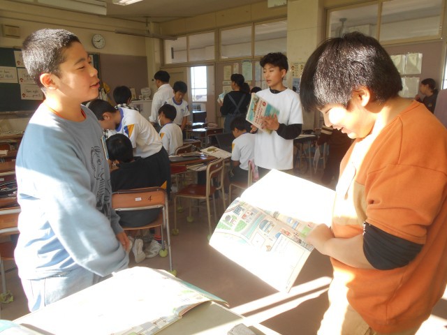 外国語の学習で、テキストに載っている地図を使って道案内の練習をしました。