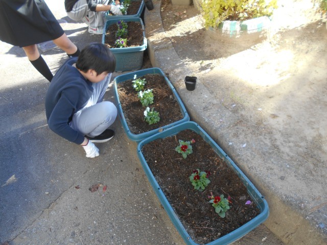 給食の時間、自然委員会の子供たちが「前庭のプランターの苗植えボランティア募集!」と放送で呼びかけました。