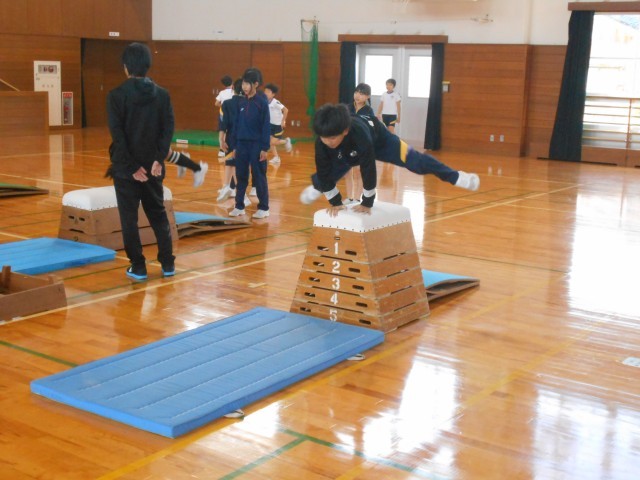 跳び箱運動を学習しています。