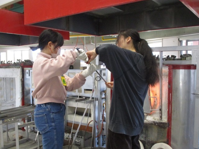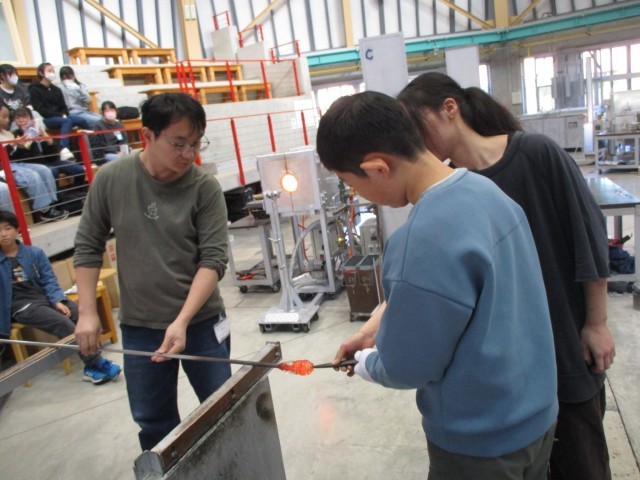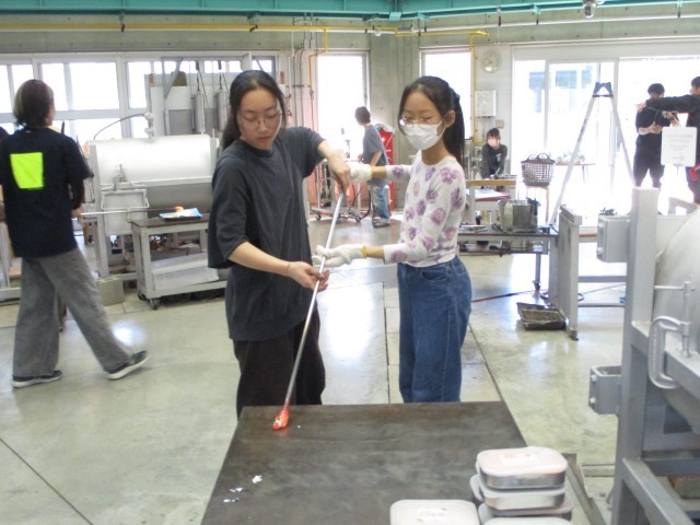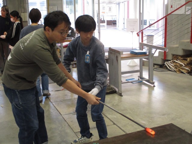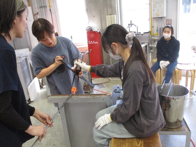 ガラス工房へ行って卒業制作のペーパーウェイトを作りました。