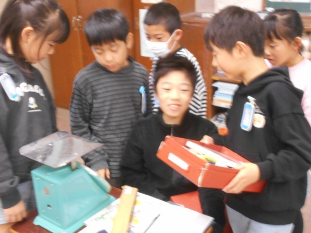 「予想よりずいぶん軽かった」「ピッタリだった」と見当をつけた数値と比べながら、意欲的に活動する子供たちでした。