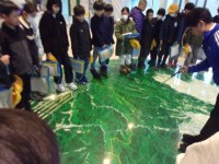シュリーレン現象の実験をしました。塩がとける様子にみんな驚いていました。