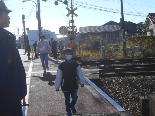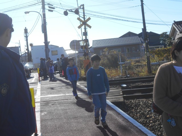 踏切の安全な渡り方を一人ずつていねいに確認しました。
