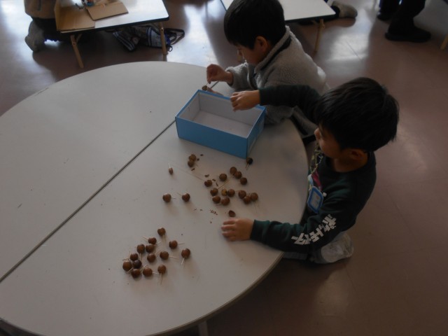 秋に集めた材料を使って、お祭りを開く準備を進めました。