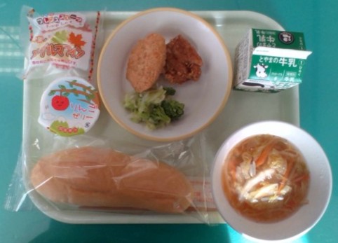 ・コッペパン ・牛乳 ・豚肉の香り揚げorえびカツ