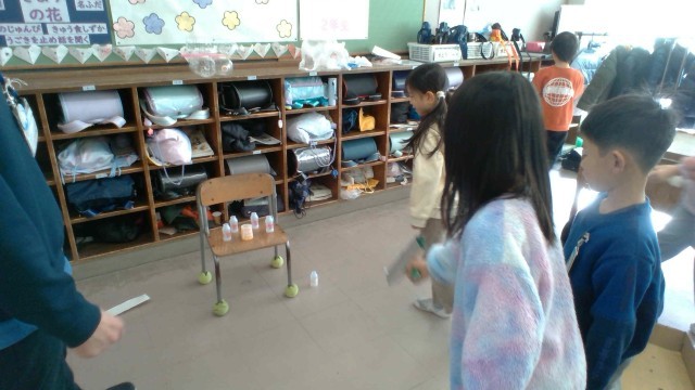ゴムの力や風の力を生かして様々な工夫がされていました。