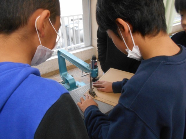 きりや糸鋸を使って、ホワイトボード作りに取り組んでいます。