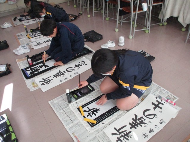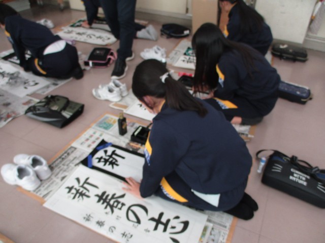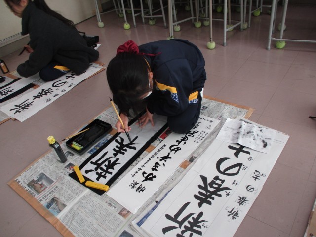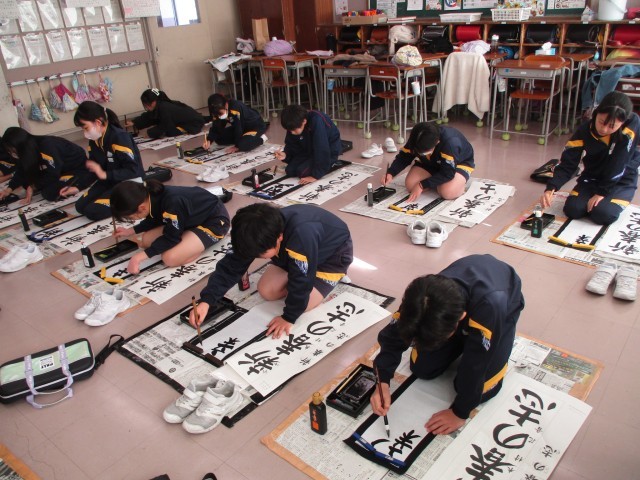 今年度初めての書初めをしました。6年生が各文字は「新春の志」です。