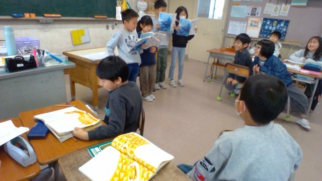 3年とうげに出てくる「歌」をどのように音読したらよいのか、グループで話合い、音読を発表しました。