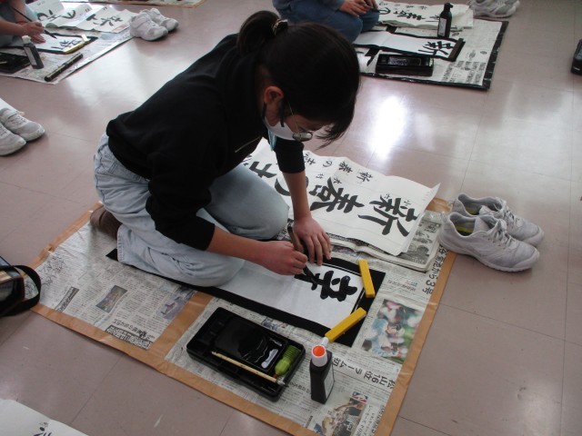 今日は2回目の書初めをしました。バランスよく書けるようになってきています。