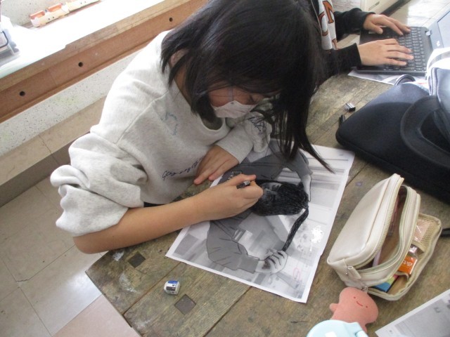 6年生 版画の下描きを仕上げたよ