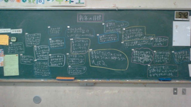 2学期を振り返り、3学期に頑張りたいことを黒板に書きました。