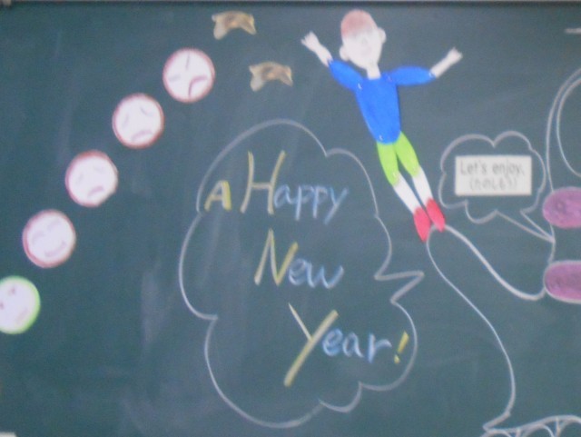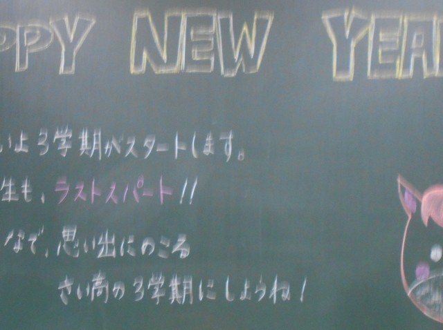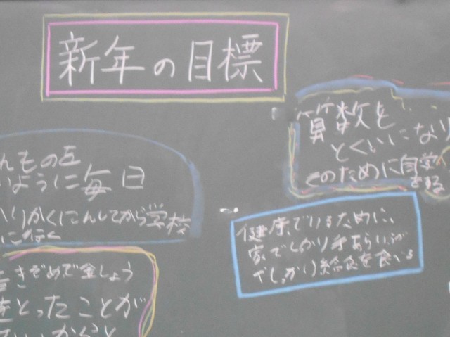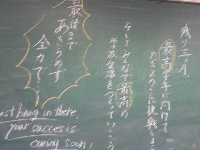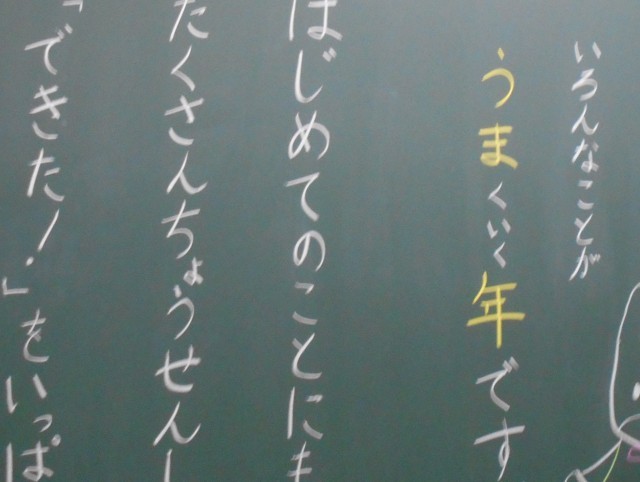 朝、各教室には、子供たちを迎えるメッセージが描かれていました。