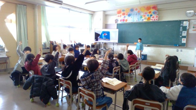 自分の好きなお話をみんなに紹介して、その友達のお話に質問をする活動をしました。友達の好きなお話に興味をもち話を聞き、質問をしていました。