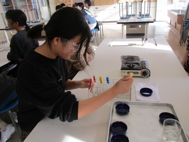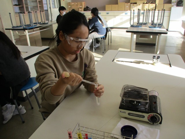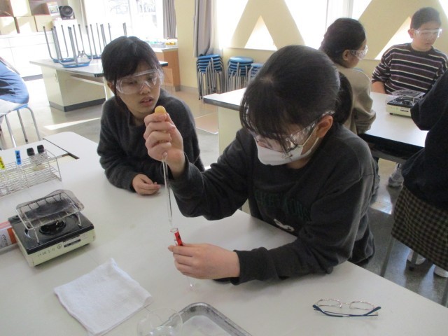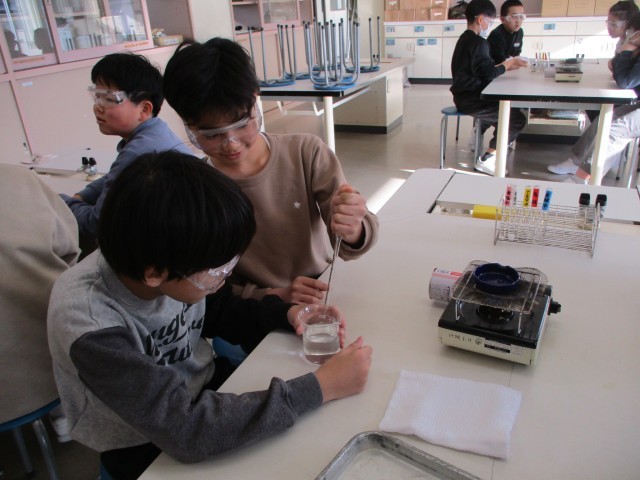 5種類の水溶液のにおいを確認したり、蒸発させたりして性質を調べました。