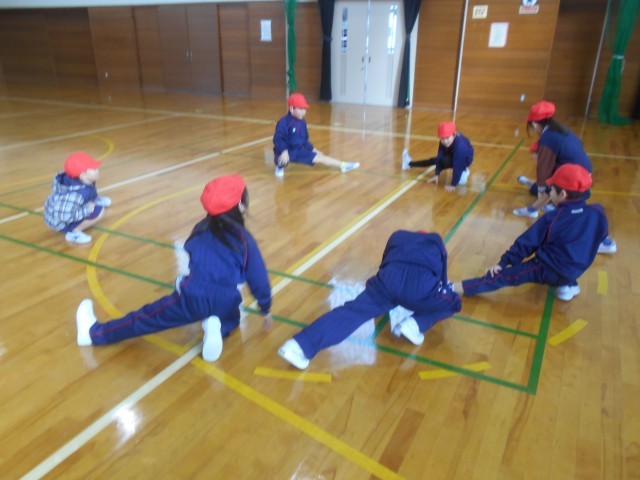 準備体操に取り組んでいました。