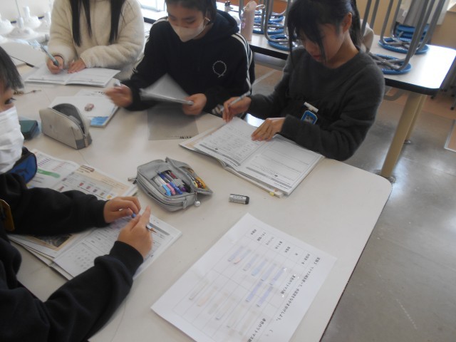 理科「水溶液の性質」でリトマス紙を使って、仲間分けをしています。