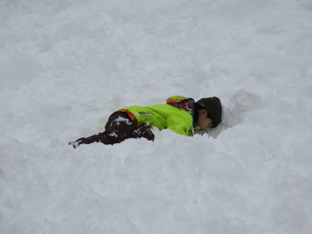 雪の坂でしりすべりをしたり、雪で遊んだりしました。