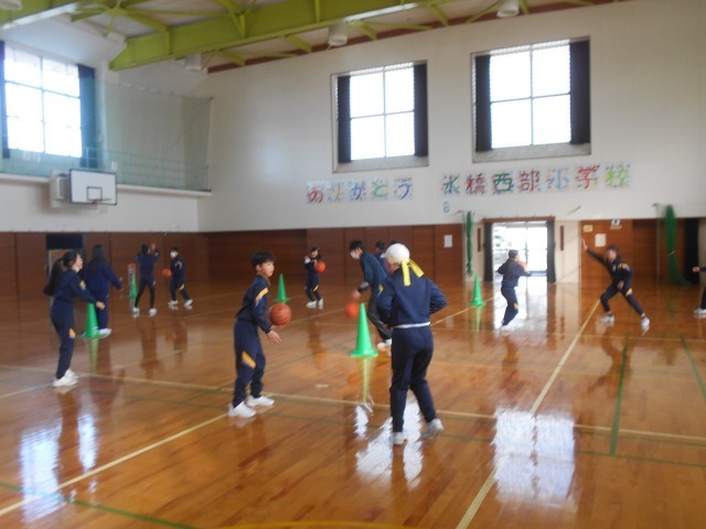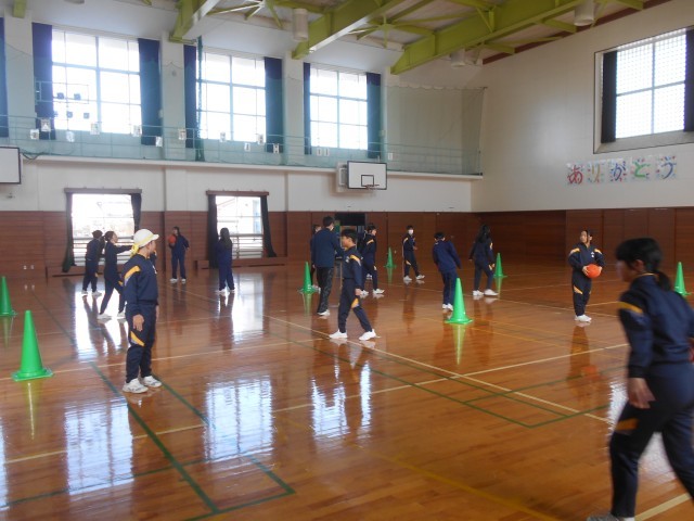 体育科「バスケットボール」で、パス、パスカットの練習をしています。