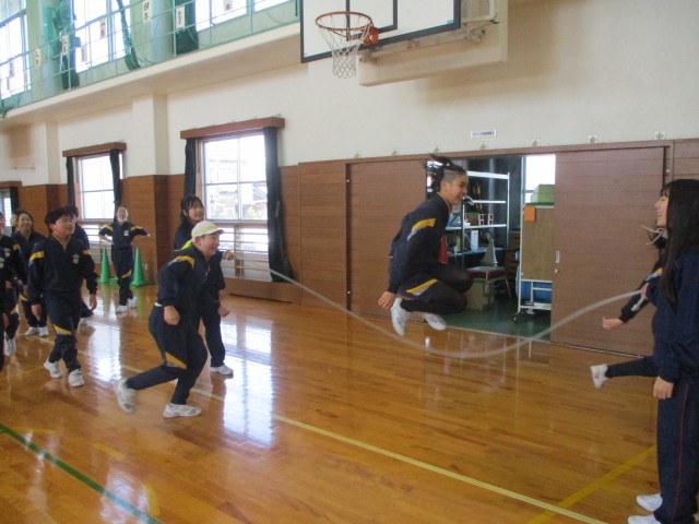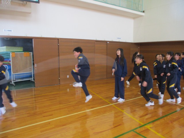 今日の体力つくりも大繩跳びでした。
