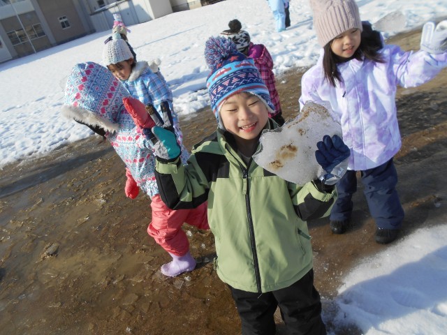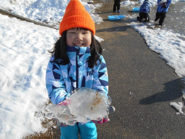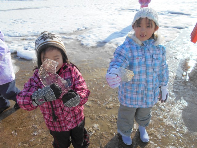 今朝は気温も低く、氷をたくさん見つけることができたようです。