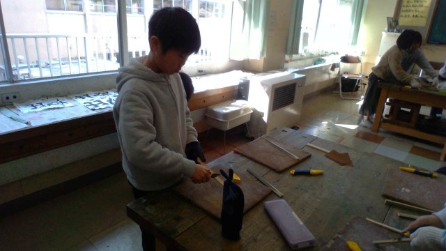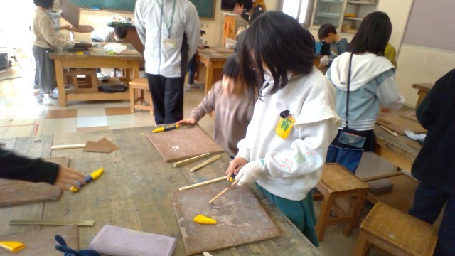 最初は、小刀を使うことが怖かったようですが、だんだん慣れてきて、楽しそうに活動していました。