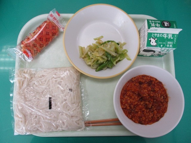 ・ソフト麺 ・牛乳🥛 ・ソフト面のミートソースかけ